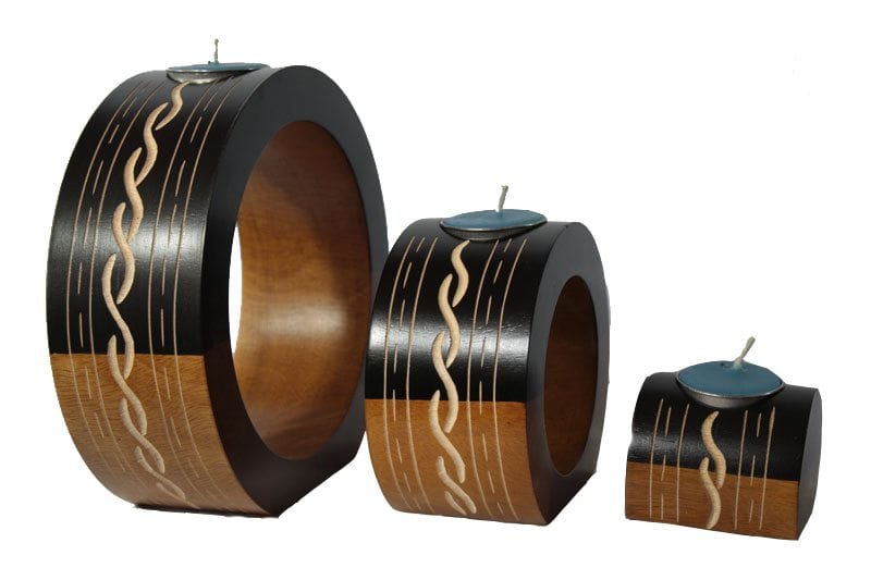 Mango Wood Round Candle Holder Set PW007